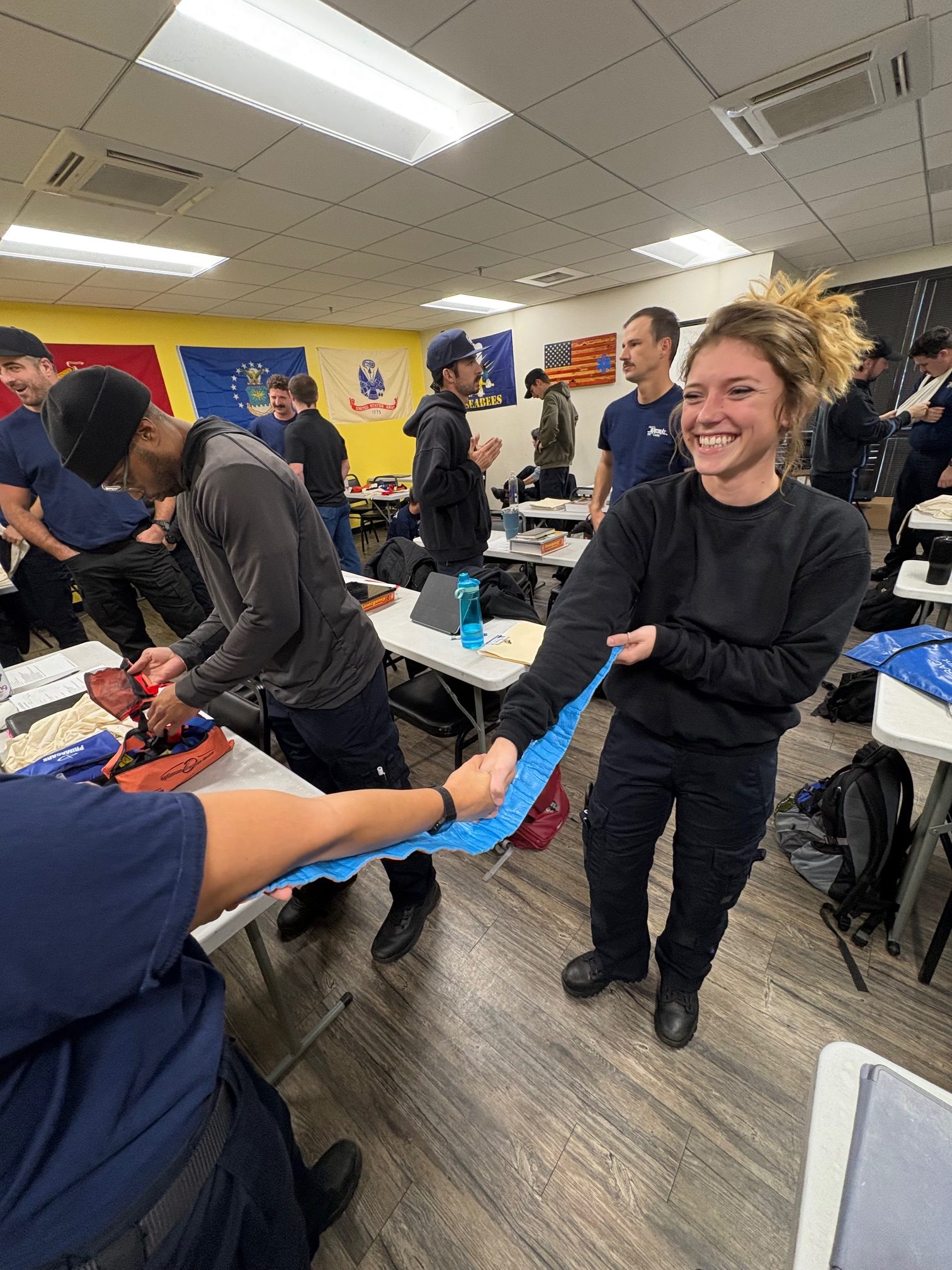 - Skills lab days focused on vital signs, airway management, CPR/AED, bleeding control, splinting, and patient movement